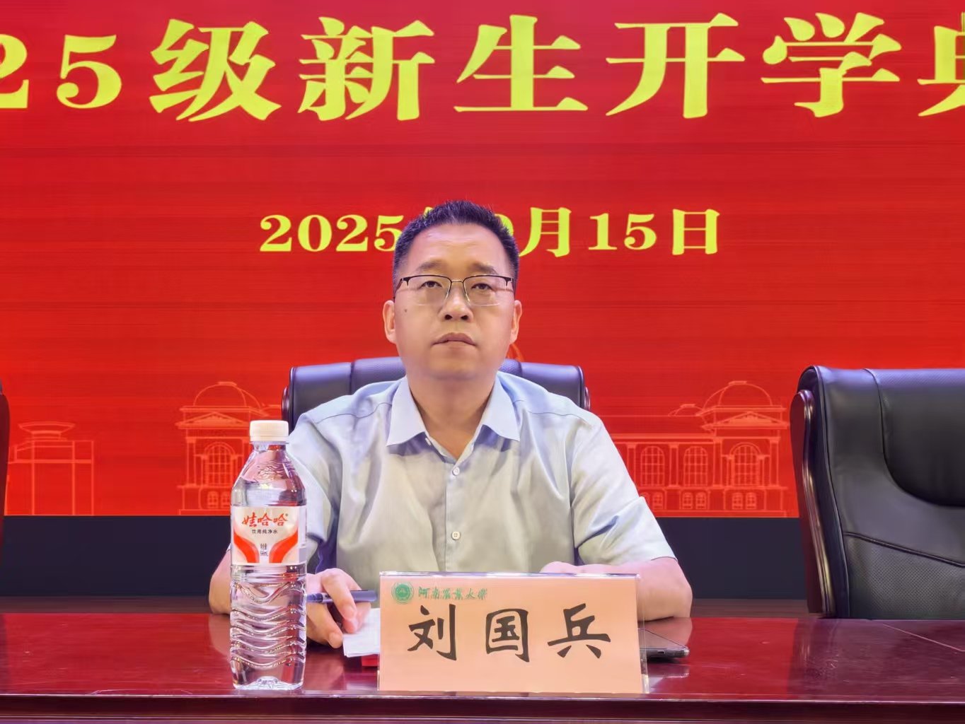随后,刘国兵以“做自信、阳光的生命人”为题,为2025级新生讲授“开学第一课”。他首先阐释了“大学生之大”的内涵,指出大学阶段的核心在于“自由度大、自主性大”,并勉励同学们珍惜时光、主动规划,实现多元发展。